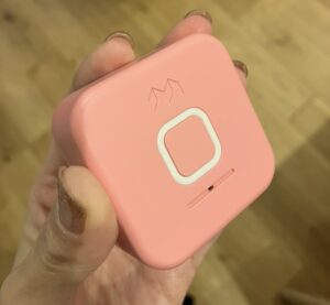 みてねGPSは超軽量(約56g)で、サイズも手のひらに収まる小ささ。